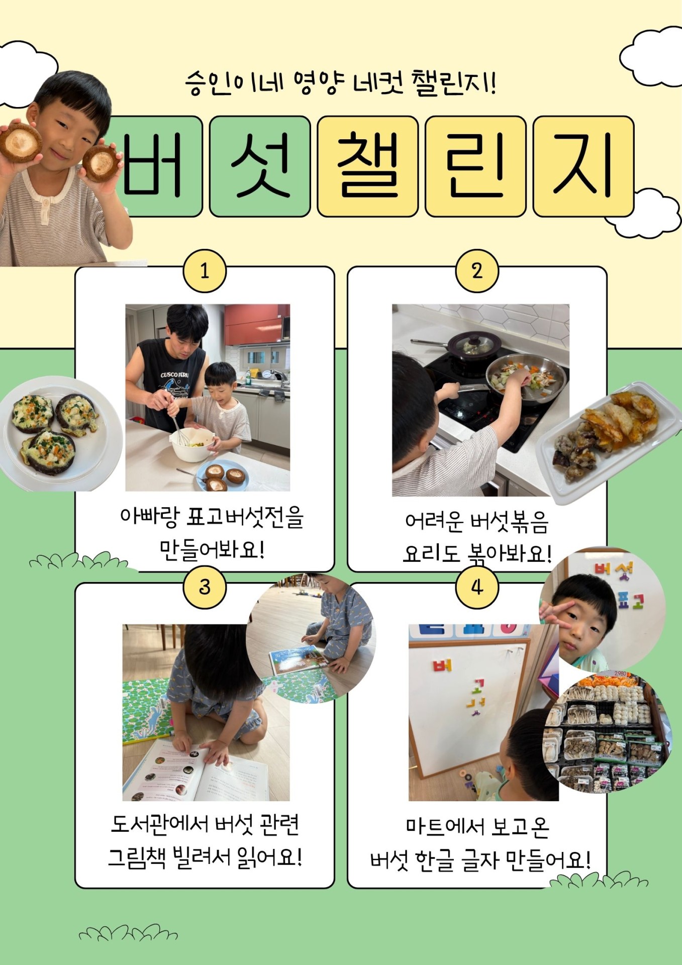 가정에서 다양하게 활동하여 네컷 사진을 찍어 참여하는 챌린지이다.