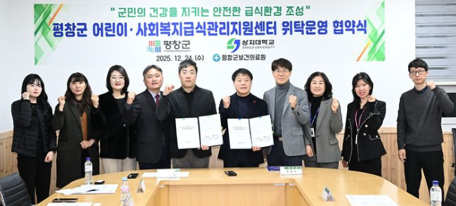 12월 24일 평창군과 상지대학교 산학협력단이 평창군 보건의료원 소회의실에서 평창군 어린이·사회복지급식관리지원센터 민간위탁 협약을 체결했다.